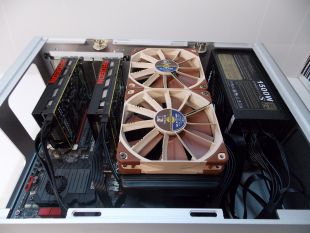 La piattaforma X79 utilizzata permette performance al pari delle ultime versioni rilasciate da Intel, scenari totalmente non limitati dalla CPU, e quindi una compatibilità fino potenzialmente a tre schede grafiche in parallelo. Nelle fotografie sottostanti sono state utilizzate per prova due AMD R9 NANO in crossfire, VGA dal basso consumo molto potenti e silenziose, che presentano un formato dimensionale particolarmente contenuto, e quindi perfetto per l'integrazione in sistemi tanto particolari. Si consiglia il montaggio di almeno 16GB per un moderno PC con prestazioni bilanciate.